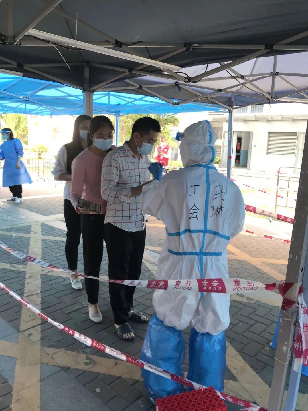 在过去将近4个月的时间里,职业化工会工作者们扎根社区,先后参与普筛核酸采样点及爱榕园管控区采样点扫码、防疫专项数据核查、居住信息核查、白名单信息录入及小区卡口值守查码等工作,在不同的岗位上展示“黄马甲”的风采,彰显工会“娘家人”的担当。无惧病毒威胁,不怕日晒雨淋,大家始终战斗在第一线;扛着长时间工作的疲惫,忍着对家中孩子的牵挂,大家牢记初心使命,坚定必胜的信念。
