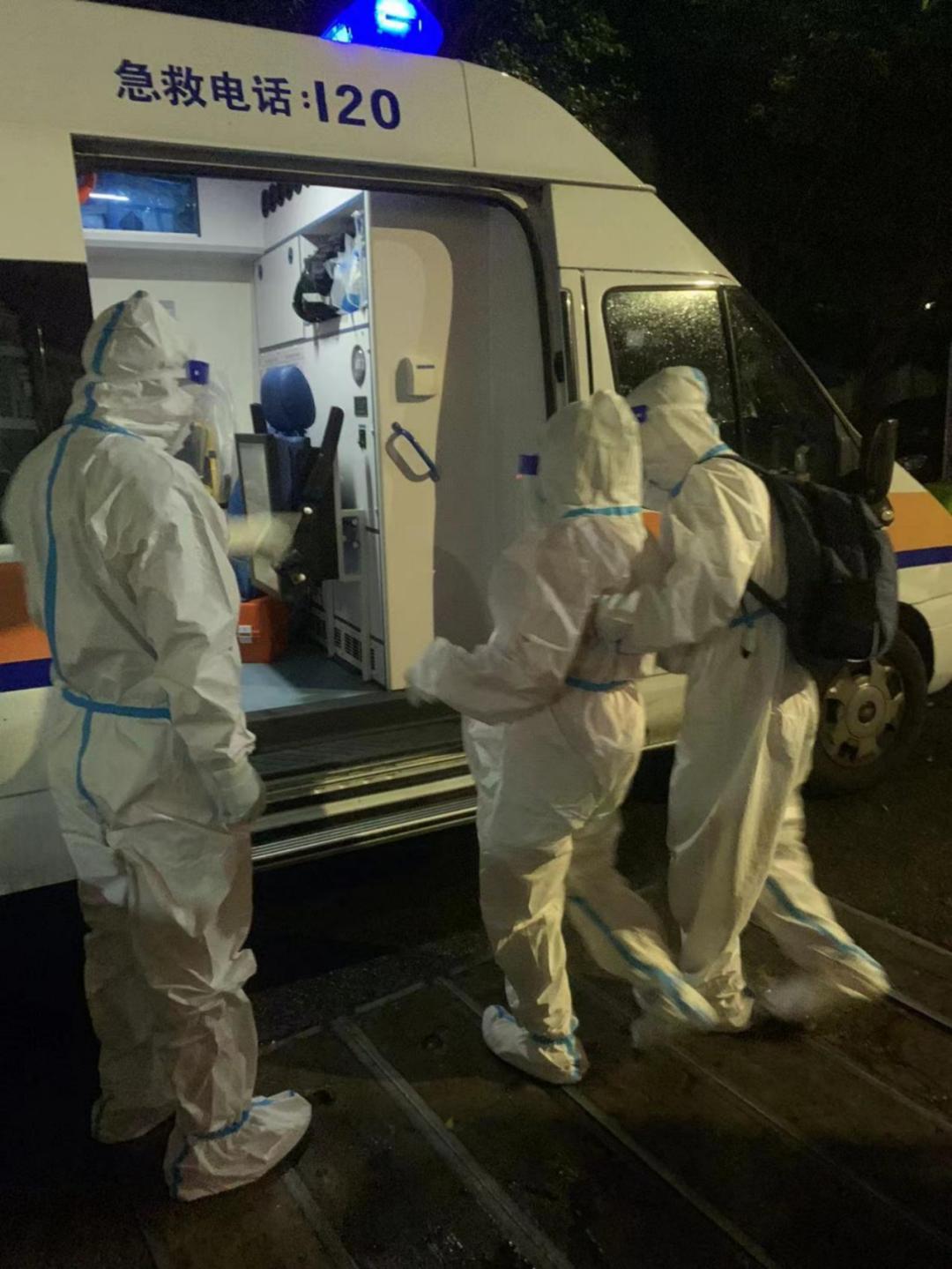 3月23日凌晨4:02,龙华街道晚班一线工作人员接上沙东村六巷二号A栋501房居民报告,家里老人高血压、身体不适,需送医院医治。接报后,龙华街道指挥员吴家钦带着刘清辉等马上赶往楼栋了解情况,并上报上沙封控管控区统一医疗救治热线处理。为争取医治时间,吴家钦及时到村入口引导医护人员入户。经医护初诊研判,患者暂时意识清醒,但情况紧急,需立即转运。随即,龙华街道马淼鑫、刘清辉及时协助医护疏通应急通道,指引救护车对患者进行转运,为患者争取了宝贵的抢救时间。