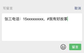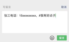 以姓名+电话+#话题的形式