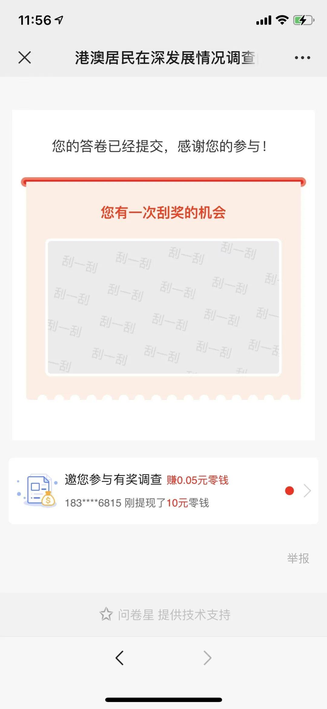 并且将完成调查问卷截图