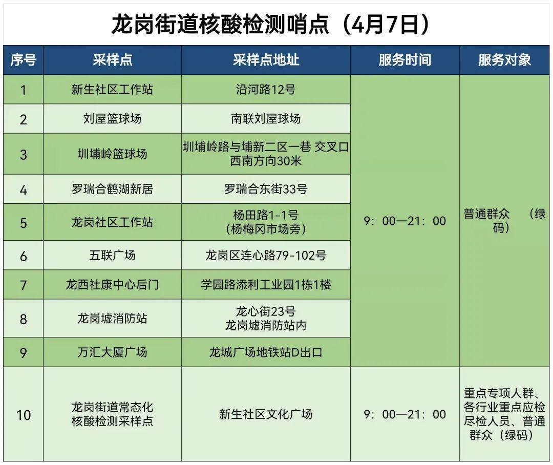 如在街道统一安排以外的时间有核酸检测需求,建议前往附近的公立医院(龙岗中心医院),全天24小时可采样。
