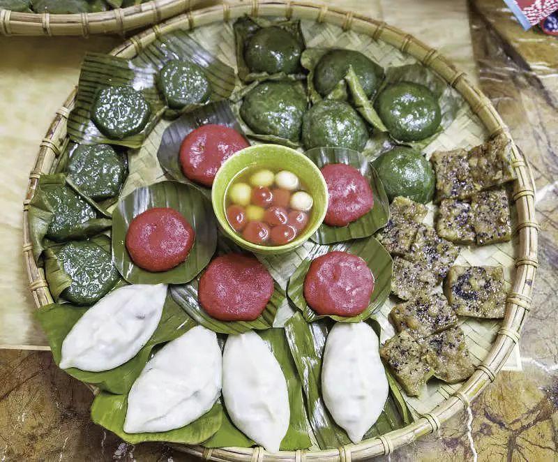 葵涌客家茶果并不是单一品类,每个时节和喜庆活动都有它们限定的茶果cp。这些茶果形状颜色各有不同,过年有红色喜庆的喜粄仔,清明有温润进补的艾茶果,秋收有口感丰盈的白糍粑,结婚有寓意百年好合的赏头圆。一年四季的茶果,全都被葵涌的客家人安排得明明白白。