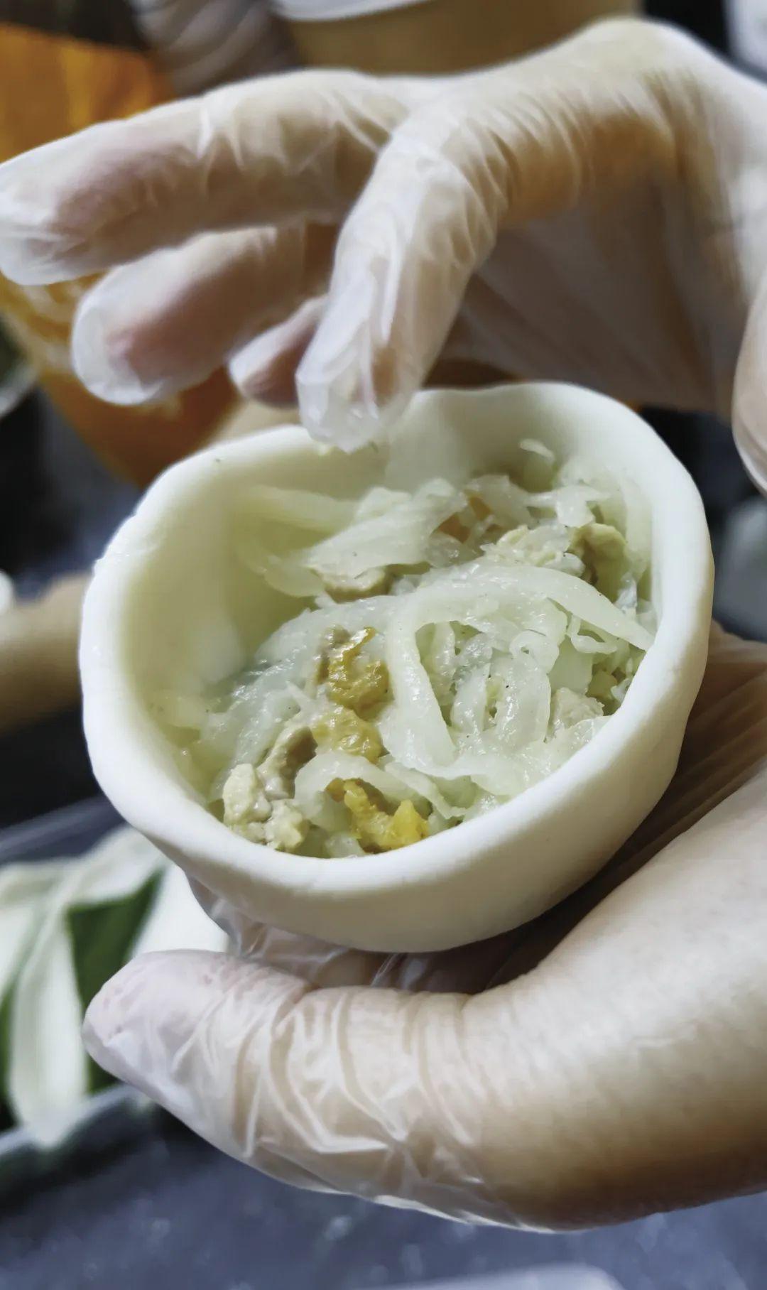 单就葵涌的菜头角来说,没想到一个巴掌大的菜头角竟然能把农家的腊味和渔家的海味全都囊括在内,馅料包括白萝卜、芹菜、蒜苗、干葱头、蚬仔肉、虾米、腊肉、腊肠等,多达九种,鲜美程度可想而知。