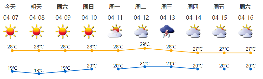 我市今天晴天间多云;气温19-28℃;东风2-3级;相对湿度40%-85%。