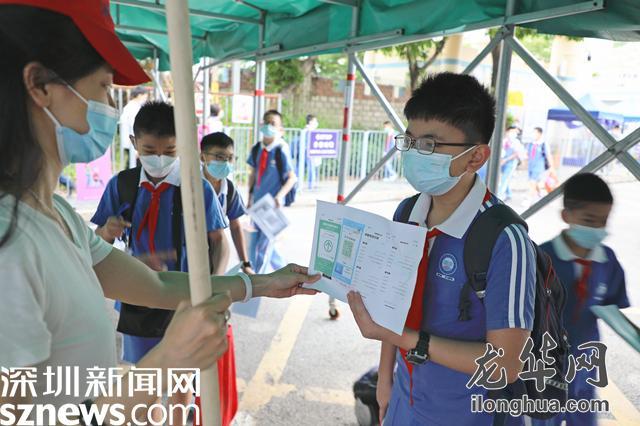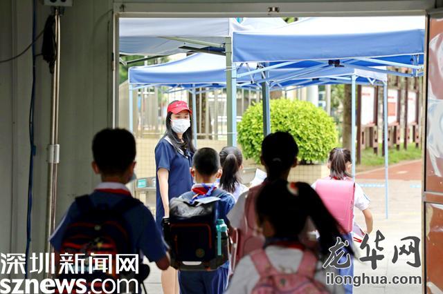 读特客户端·深圳新闻网2022年4月14日讯(记者 胡安坤 李昕阳)4月13日,龙华区81所小学近15万名小学生返校。清晨时分,春光尚好,微风和煦,清湖小学的校领导和老师们早早地就来到校门口迎接学生,一个个“萌娃”戴着口罩,手持两码,经过测温,有序走进校园。据了解,该校当天共有约3100名学生返校。