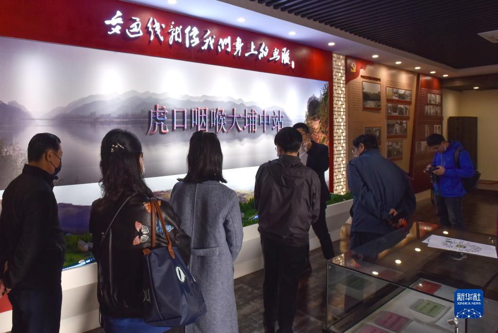 参观者在广东梅州大埔县中央红色交通线大埔中站展厅参观中央红色交通线的光辉历史(1月9日摄)。