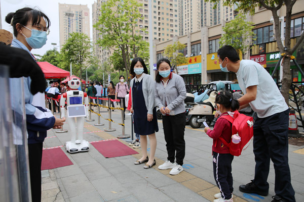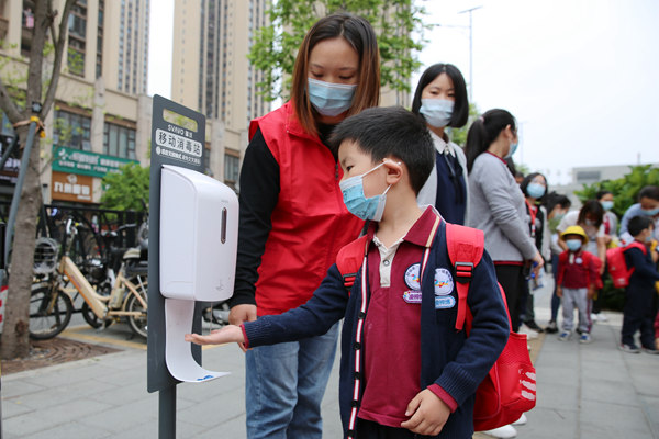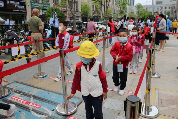入园前口罩、测温、洗手、一米间距,一点不含糊。