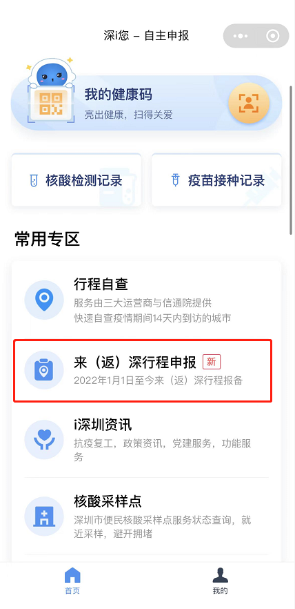 第二步:打开返深行程申报。
