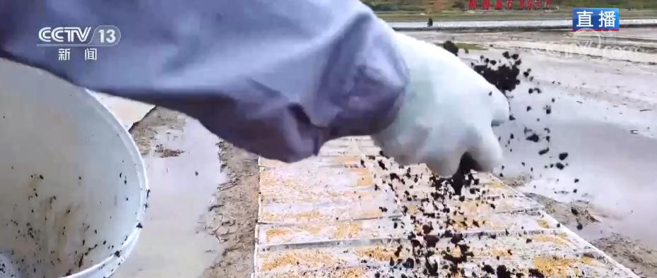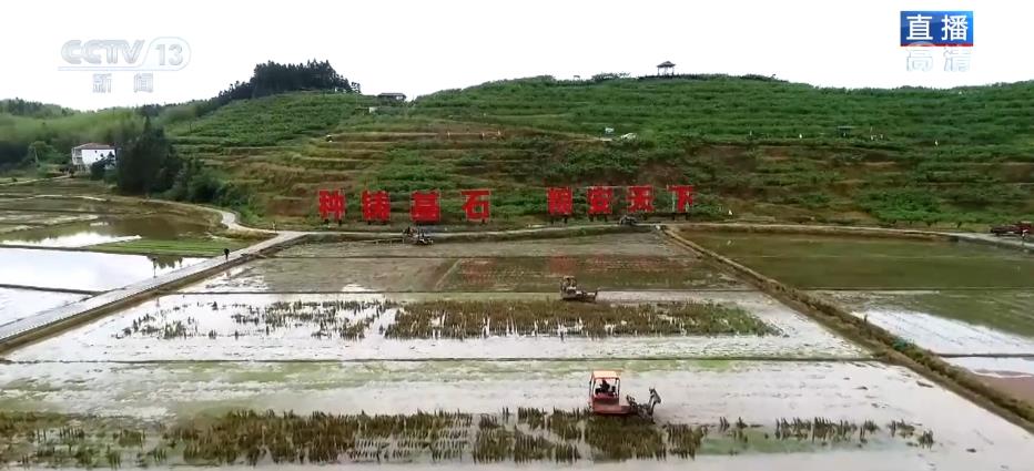 此时此刻在大田里,人们正在将一张张白纸平铺在秧地上,就像了展开了一个个卷轴画卷。您能猜出来他们在做什么吗?答案在这儿来揭晓,这是一个播种神器,它的名字叫“印刷播种机”。这个宽约60厘米的白纸就是育秧纸,它是用可降解的材质做成的。前面有一个滚筒,里面装的是特制的淀粉胶,按照之前设置好的行间距,淀粉胶会被均匀地印刷在育秧纸上,伴随着机器向前运动,种子会被淀粉胶粘在育秧纸上,这个时候的育秧纸就可以裁下来放在水田里进行播种。上面再铺上一层营养土。这种技术每小时可以完成60亩大田的播种,相比于人工,它不仅提升了效率,而且还节约了30%的种子。我身后正在机插的秧苗,就是通过这种方式培育出来的。看得出来,当地的农民个个都是农机高手,不管是耕田机、播种机、插秧机,还是无人机,可以说是样样精通。