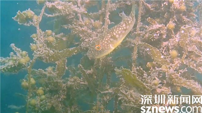 除了能看见丰富的生物,马尾藻所形成的大型海藻场具有重要的生态价值。藻体本身是天然的养料食物,枝枝桠桠适合各种卵的附着与孵化,成片的藻场又有庇护作用,佑护仔稚鱼生长。因此,作为海洋生态环境的稳定者和修复者,海藻场具有突出的生态功能,在生境营造、资源养护、饵场形成、水质净化等方面都发挥重要作用。