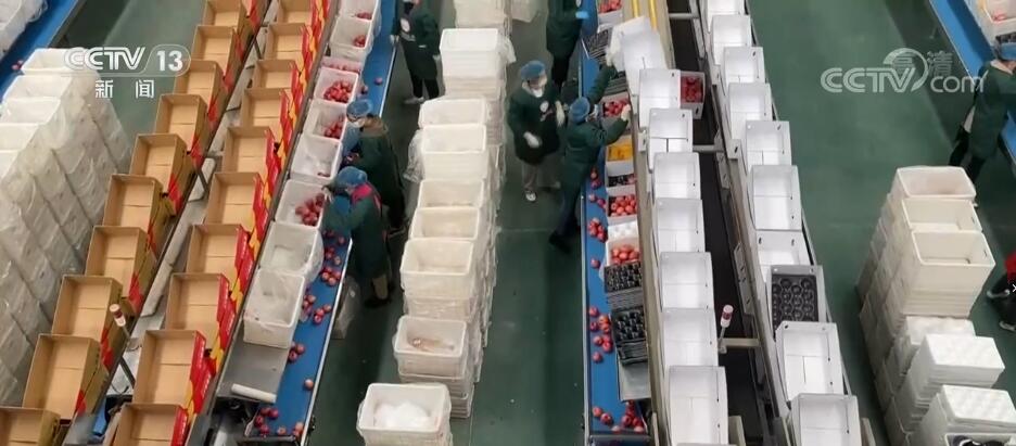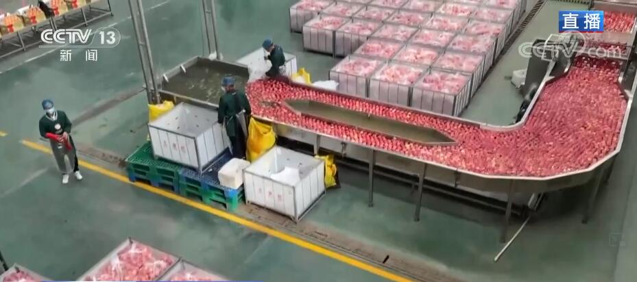 经过这些程序,相同品质的苹果会在一个传送通道上集合,排队走进相应的包装台进行分类包装。有了统一标准和自身好品质的洛川苹果,不仅远销各大一线城市,更是走出国门,成了当地果农脱贫致富的“金果果”。