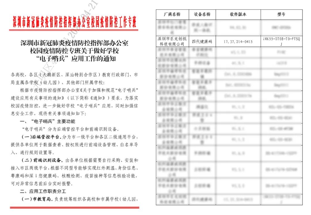 读特客户端·深圳新闻网2022年5月5日讯(记者 曾舒琪)“电子哨兵”的投入使用,让深圳防疫工作的效率和安全性得到了较大提升。为进一步提高防疫精准化、水平精细化,满足市场需求,近日,深圳市组织第二批产品性能测试,宝企巨龙创视电子哨兵成功入围,“宝安出品”获得官方推荐。据悉,这也是宝安区唯一一家入围该名单的国家高科技企业。