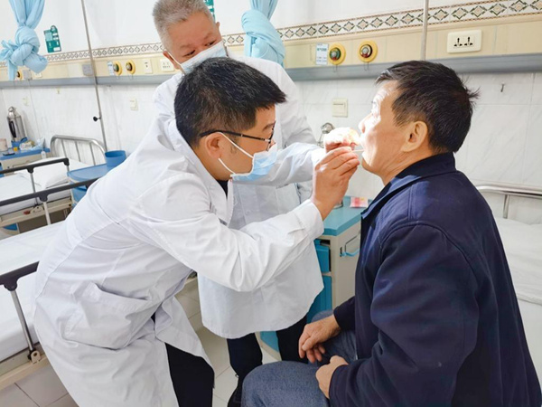 张辉自2022年4月到德保县人民医院以来,担任口腔科技术主任,积极参加科室交班、查房、手术、会诊、病例讨论、手术演示、教学培训等活动,同时与科室人员沟通了解口腔科业务开展情况,针对性找出能帮扶的点,规划帮扶内容。他发现科室存在人员年龄偏大、学历不高、技术较低、病人量不多等问题,且外部环境竞争激烈、耗材设备短缺。针对这一情况,张辉与科室主任沟通交流,初步确定以牙槽外科提升为近期目标、种植牙为远期目标的帮扶计划,成功向医院提出申请。