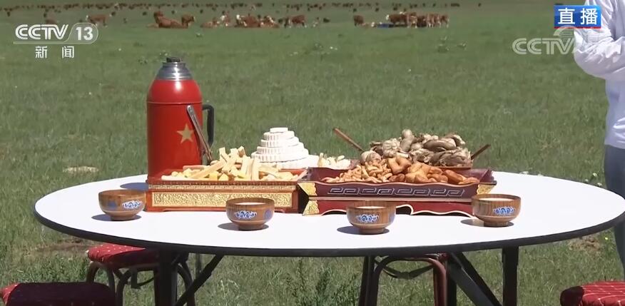 大家知道我们《大美边疆行》来这里拍摄,都非常热情,还特意备下了盛宴,为了更好地展示,我们也特意从蒙古包里搬到了草原上。可以看到桌子上已经准备上了花式各样的奶豆腐,还有草原上必不可少的手把肉、奶茶。今天通过我们的镜头,给全国的观众朋友发出一份邀请,希望大家有时间能够来到乌拉盖,欣赏大美的草原风光的同时,体验一把牧民当下的幸福生活。