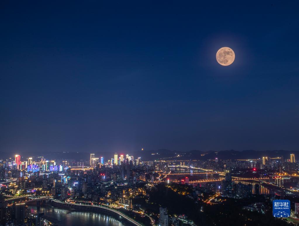 7月13日拍摄的现身重庆夜空的“超级月亮”。