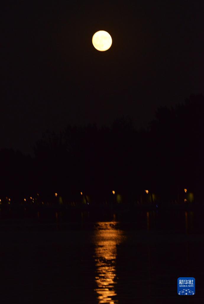 7月13日在北京北海公园拍摄的“超级月亮”。