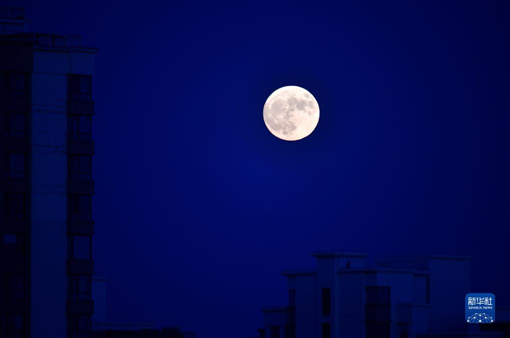 7月13日在内蒙古呼和浩特市拍摄的“超级月亮”。