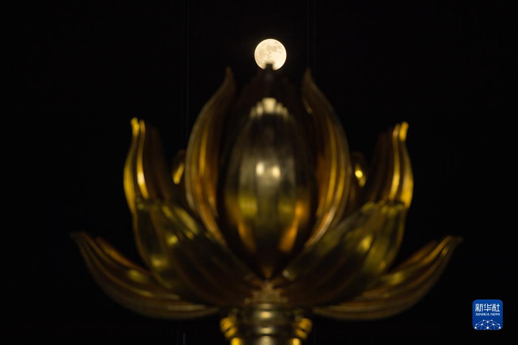 7月13日,“超级月亮”现身澳门金莲花广场。