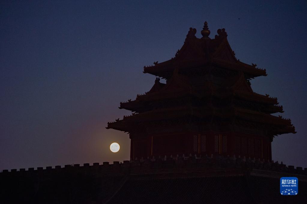 这是7月13日在北京故宫西北角楼前拍摄的“超级月亮”。