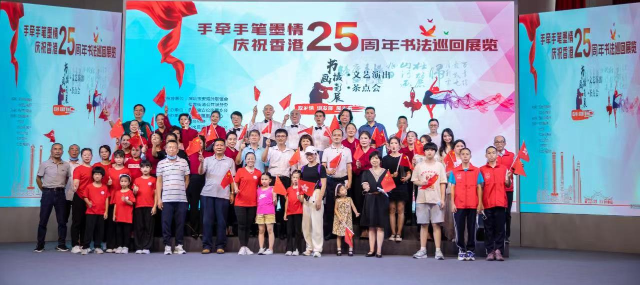 读特客户端·深圳新闻网2022年7月16日讯(记者 贺靛婧 通讯员 彭琼康 文雨晴)为庆祝香港回归25周年,热情讴歌深港融合发展的巨大成就,进一步团结广大港亲凝聚共识,增强爱国爱港情感,加强深港乡亲之间的文化交流,传承乡情文化,7月15日下午,香港宝安松岗同乡会在松岗文化艺术中心小剧场开展了文艺演出、“手牵手、笔墨情”书画摄影展览和茶点会等系列庆祝活动。