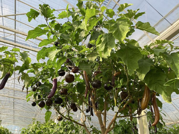 除了水稻,团队还为茄科植物引入了多年生特性。在试验田不远处,一座“超级植物园”已初具规模。据悉,茄子树是华大与中国蔬菜类茄子研究创新团队合作,经过13年科学研究培育出的一种颠覆传统农业生产模式的树茄砧木超级物种,将一年生的草本茄子,通过超级砧木嫁接模式变成灌木本的多年生模式,并且可以将茄子、辣椒、西红柿、人参果等同时嫁接在同一棵砧木上,实现抗病、高产。