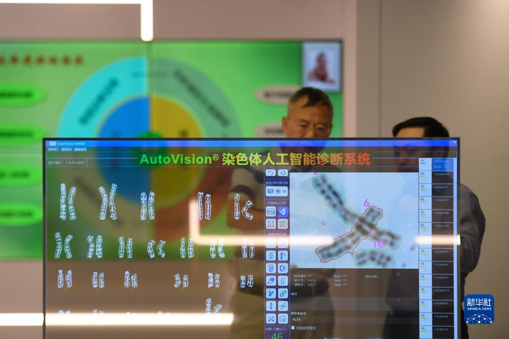 参加中国(杭州)数字·健康小镇开园仪式的嘉宾在小镇的成果转化区了解一套染色体人工智能诊断系统(2020年8月30日摄)。新华社记者黄宗治摄