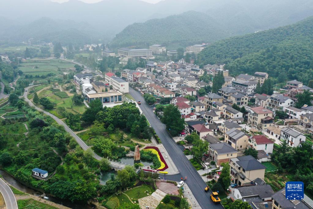 空中俯瞰浙江省安吉县天荒坪镇余村村(2020年7月28日摄,无人机照片)。新华社记者黄宗治摄