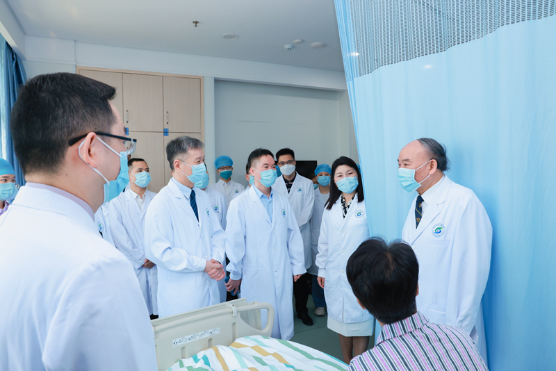 论坛结束后,郑树森院士来到普外病区,参与科室的交班与查房。“树兰医疗与松岗人民医院建立合作,将为更多的复杂疑难肿瘤患者提供便捷优质的诊疗服务,共同推动区域肿瘤疾病的诊疗水平。”在接受采访时,郑树森院士这样告诉记者。