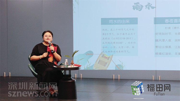 沙龙现场,李小莹正在讲解雨水节气的由来。