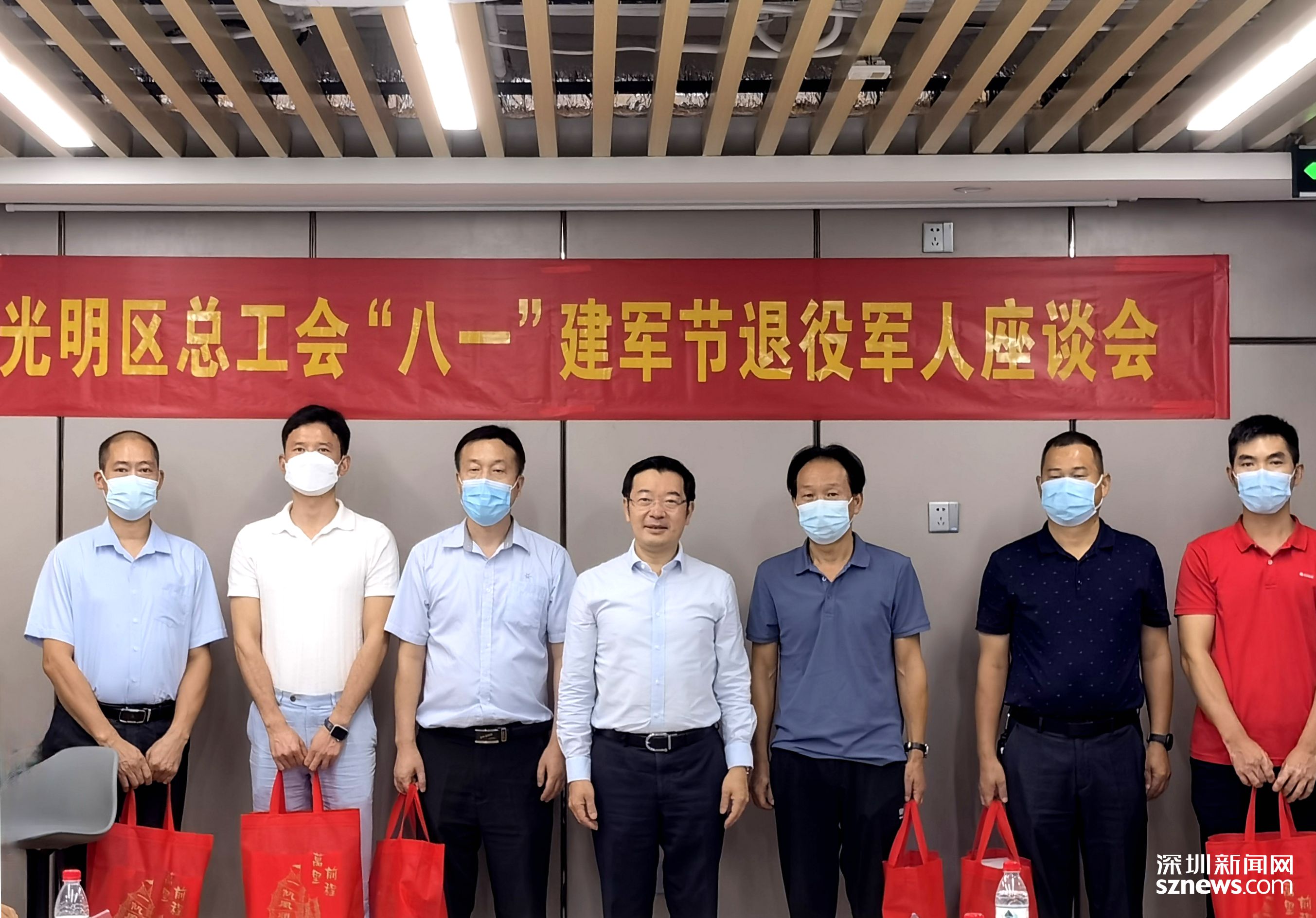 读特客户端·深圳新闻网2022年7月28日讯 (见习记者 晏仔怡 通讯员 陈嘉敏)7月27日,光明区总工会开展“八一”建军节退役军人座谈会,在光明区总工会职工服务中心,共话峥嵘岁月。会议邀请了全区15名退役军人职工代表,其中包括市、区劳模工匠,基层工会干部以及企业优秀员工及预警信息员。区人大常委会副主任、区总工会主席陈晓中参加此次座谈会。