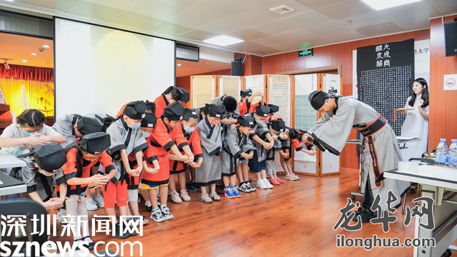 读特客户端·深圳新闻网8月9日讯(记者 胡安坤 通讯员 翟桂和)8月7日上午,观湖街道关工委联合松元厦社区关工委,特邀全国关心下一代工作先进工作者邵干才老师,在松元厦党群服务中心开展“书法为媒礼孝传家”亲子活动。活动以着汉服、行古仪、诵经典、习书法等形式带领青少年们在感受传统文化魅力的同时,用汉礼诠释尊师明礼,培养青少年心怀感恩、立德修身,学会自省自律,成为有大爱大德大情怀的栋梁之才。
