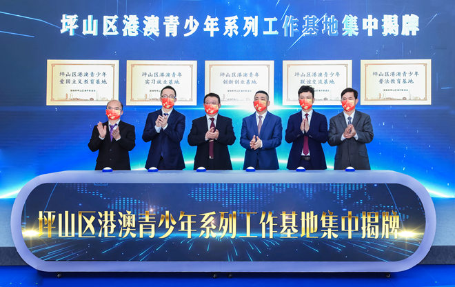 读特客户端·深圳新闻网2022年8月9日讯(记者 杨涛)8月8日,坪山区港澳青少年系列工作基地集中揭牌及交流活动在坪山区港澳青少年联谊交流基地(深百·新经济基地)举行。深圳市委统战部二级巡视员周文军,坪山区委常委、统战部部长李广明等出席活动,并为19个“坪”味十足的港澳青少年交流工作基地揭牌。