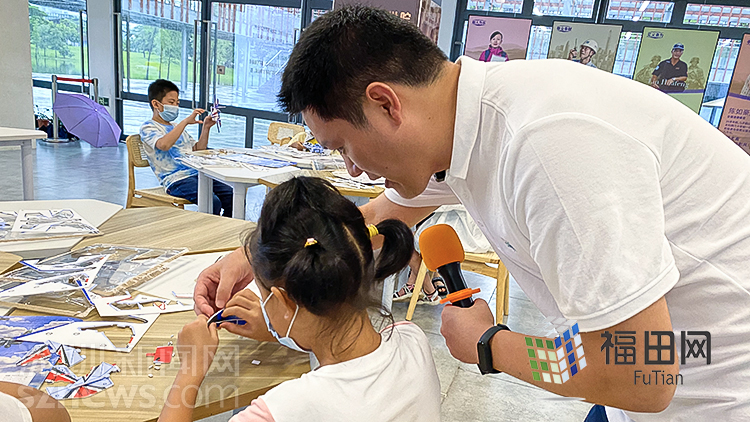 指导老师在教小朋友制作航天模型。