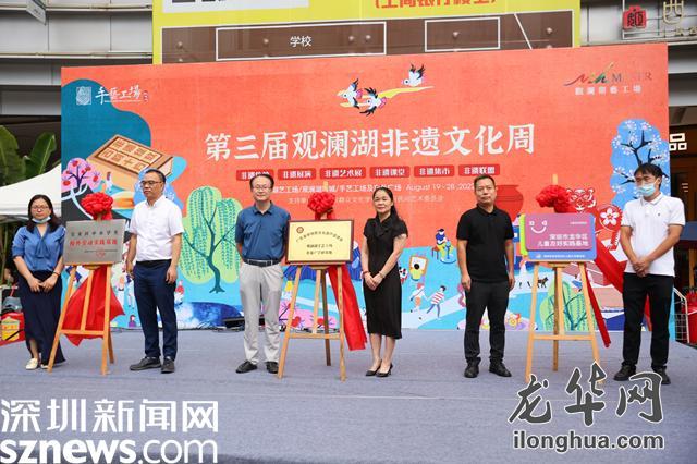开幕式上,观澜湖手艺工场正式宣布新增“三重身份”:非遗产学研基地、深圳市龙华区儿童友好实践基地、宝安区中小学生校外劳动实践基地。相关负责人表示:“观澜湖长期对文创产业的投入正在获得实效,这次挂牌说明了社会公众和行业对我们的认可。手艺工场将会继续自我完善,为大湾区市民打造一个手作文化高地,为非遗文化的传习事业做贡献。”