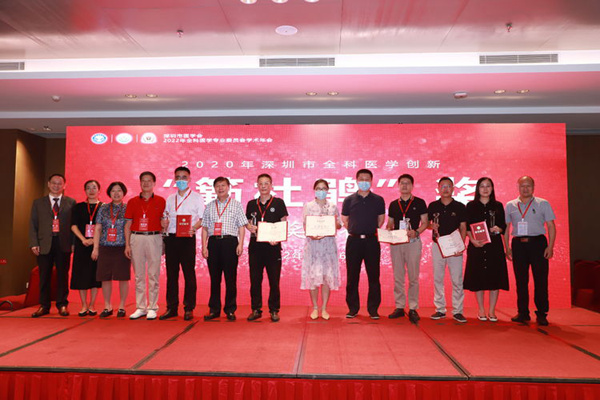 全科医学专业委员会吴江主委向大会作2022年深圳市医学会全科医学常委会第一次会议报告,并主持“2020年深圳市全科医学创新‘簕杜鹃’奖”的颁发,与到会领导、专家为获奖者颁发荣誉证书和奖杯。