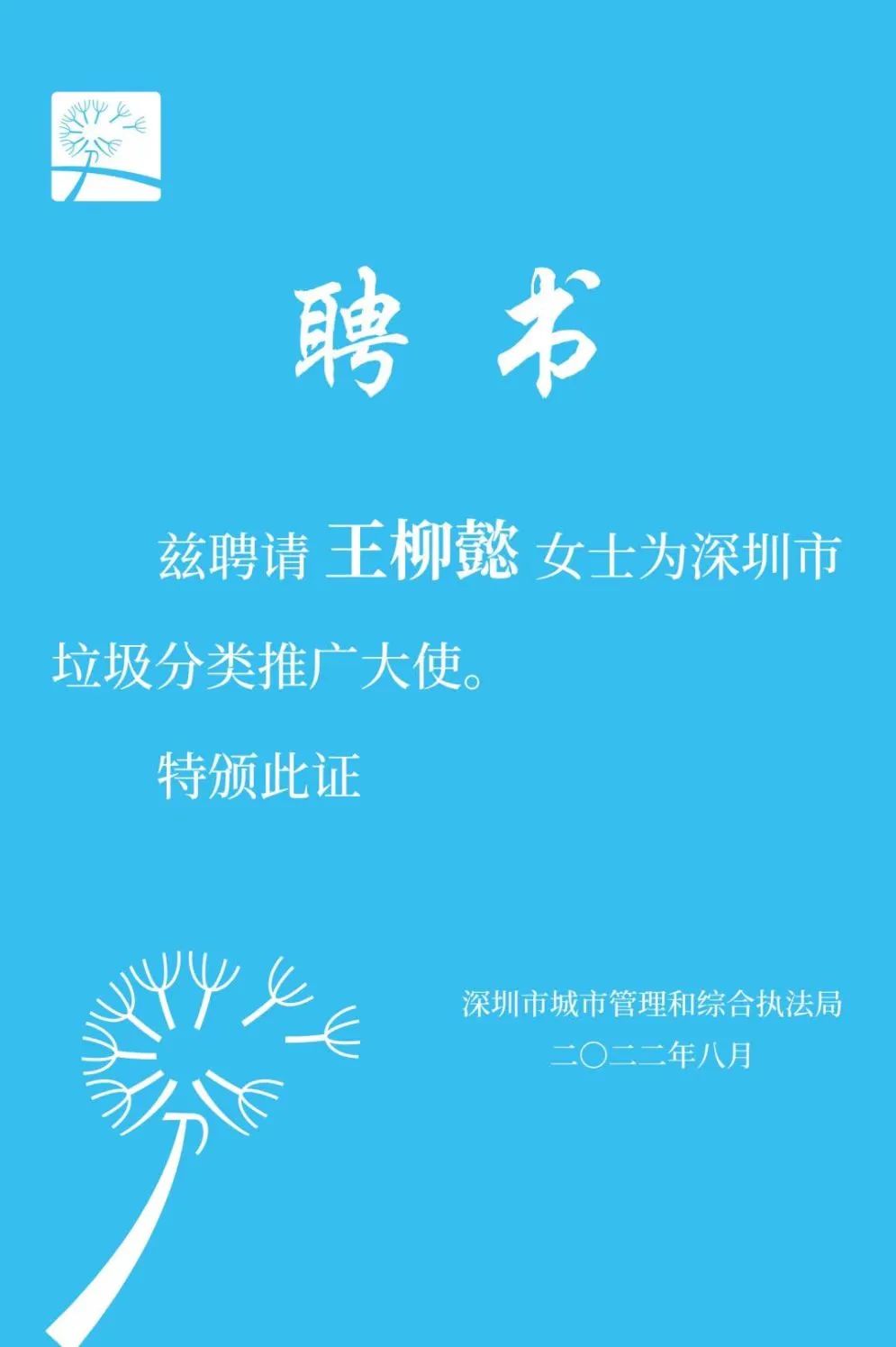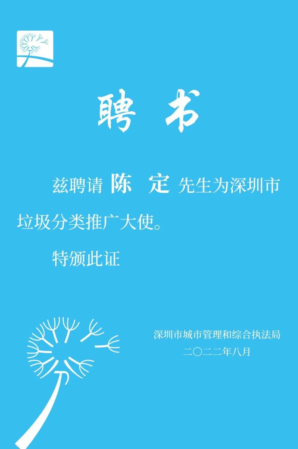 被正式聘请为“深圳市垃圾分类推广大使”!