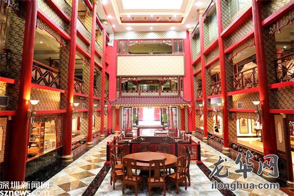 该馆总面积两万多平方米,共有六层楼,藏有数以万计的红木精品。