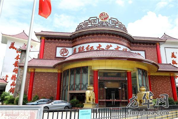 在观澜红木家居艺术街入口,如宫殿式气势恢宏的美联红木艺术博物馆一眼可见。