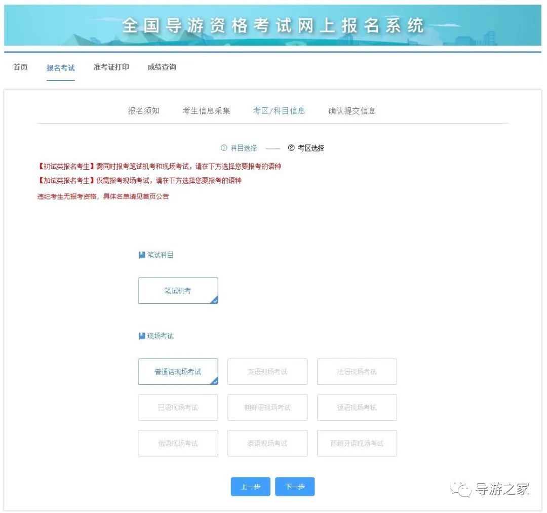 12.在选择完考区后,点击“下一步”按钮,进入报考信息界面: