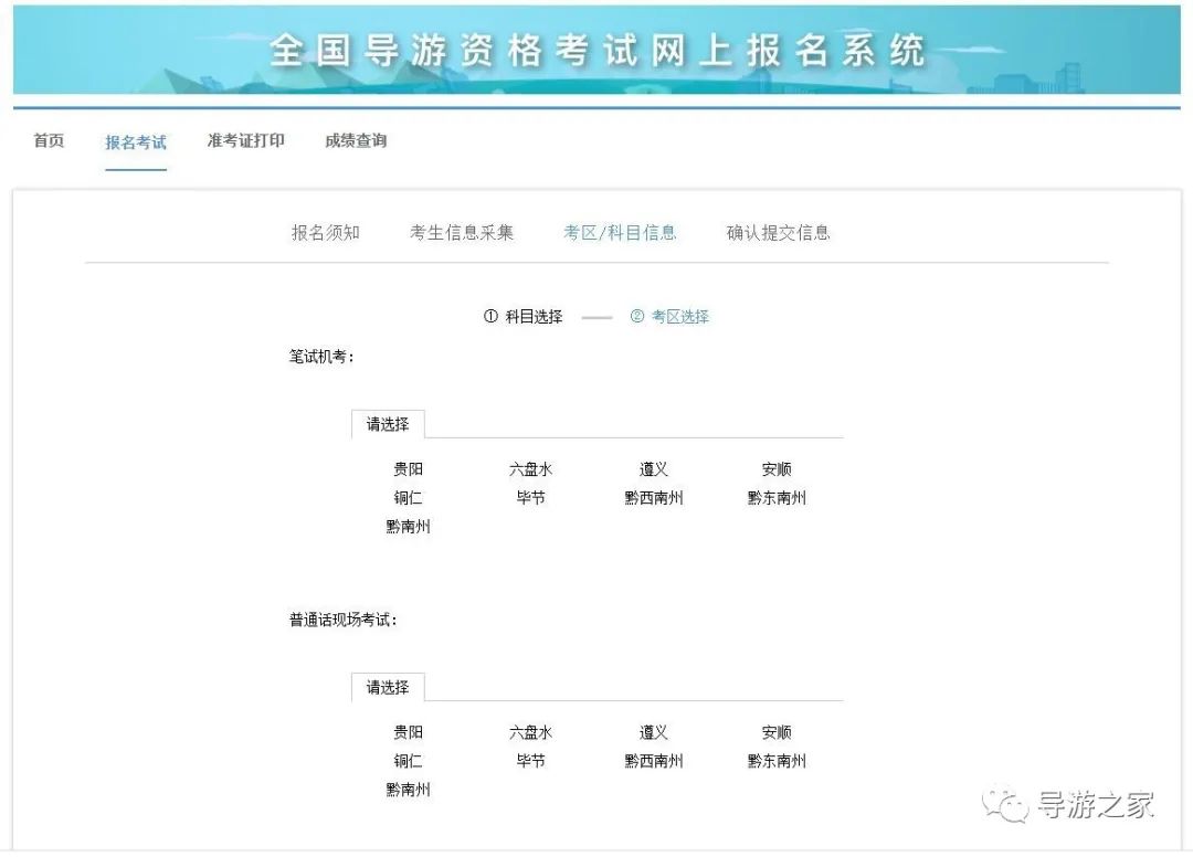 11.在选择完报考科目后,点击“下一步”按钮,进入考区选择界面: