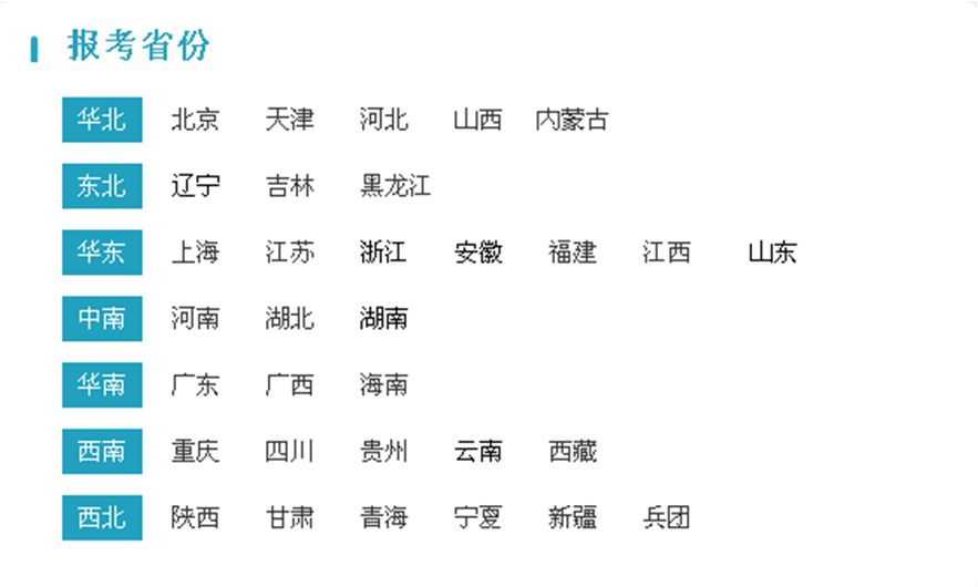 2.考生在全国导游资格考试网上报名系统首页的“报考省份入口”处点击选择需要报考的省份进行报名。如图4所示