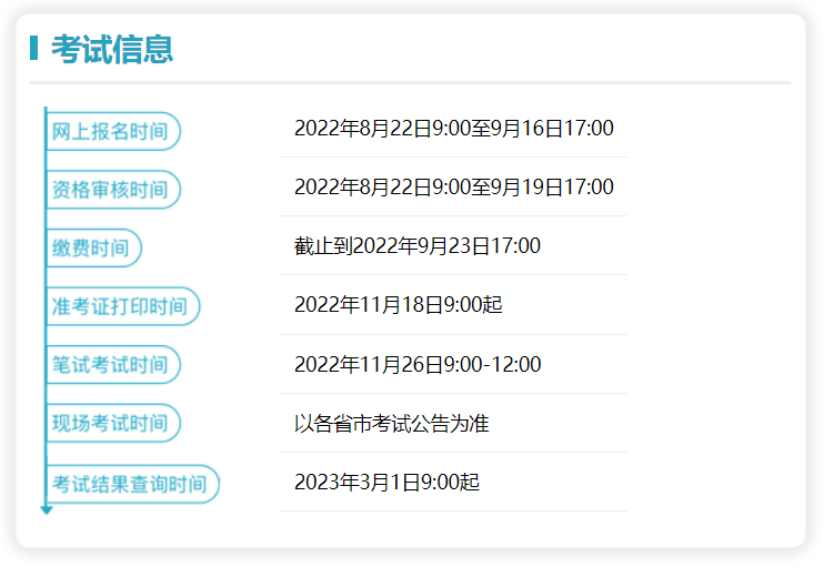 本次考试按照各省市不同要求,分为现场缴费和在线缴费两种形式,请按各省市要求办理。资格审核合格的考生,方可缴费。缴费完成后,报考费不予退还。缴费时间截止2022年9月23日17:00。