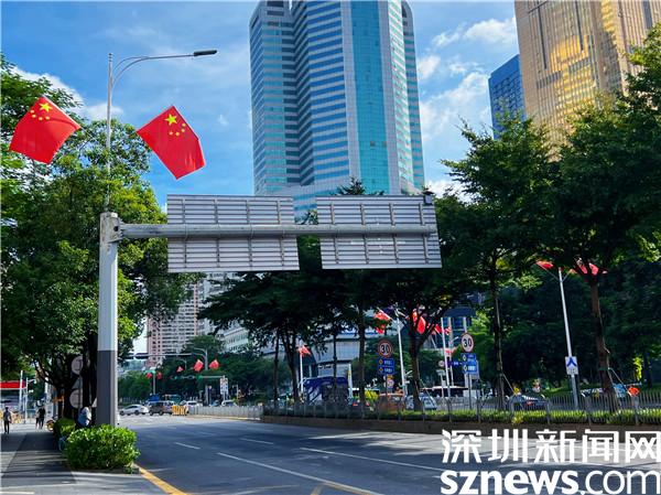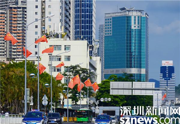 读特客户端·深圳新闻网2022年10月1日讯(记者 刘嘉敏)国庆假期第一天,行走在罗湖区的大街小巷,处处洋溢着喜庆的浓厚氛围。一面面鲜红的国旗悬挂在城区主次干道,在蓝天白云的衬托下,鲜艳的“中国红”迎风飘扬,成为城区一道最靓丽的风景线。深圳新闻网记者带着镜头走进罗湖,将这一幕幕迎风飘扬的“红色”定格。