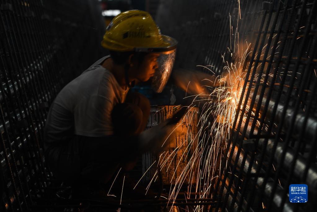 10月18日,工人在黄茅海跨海通道智慧梁场进行焊接作业。