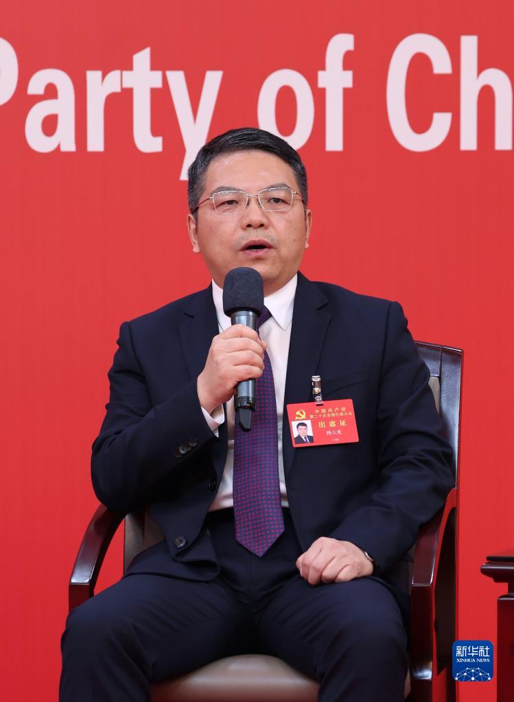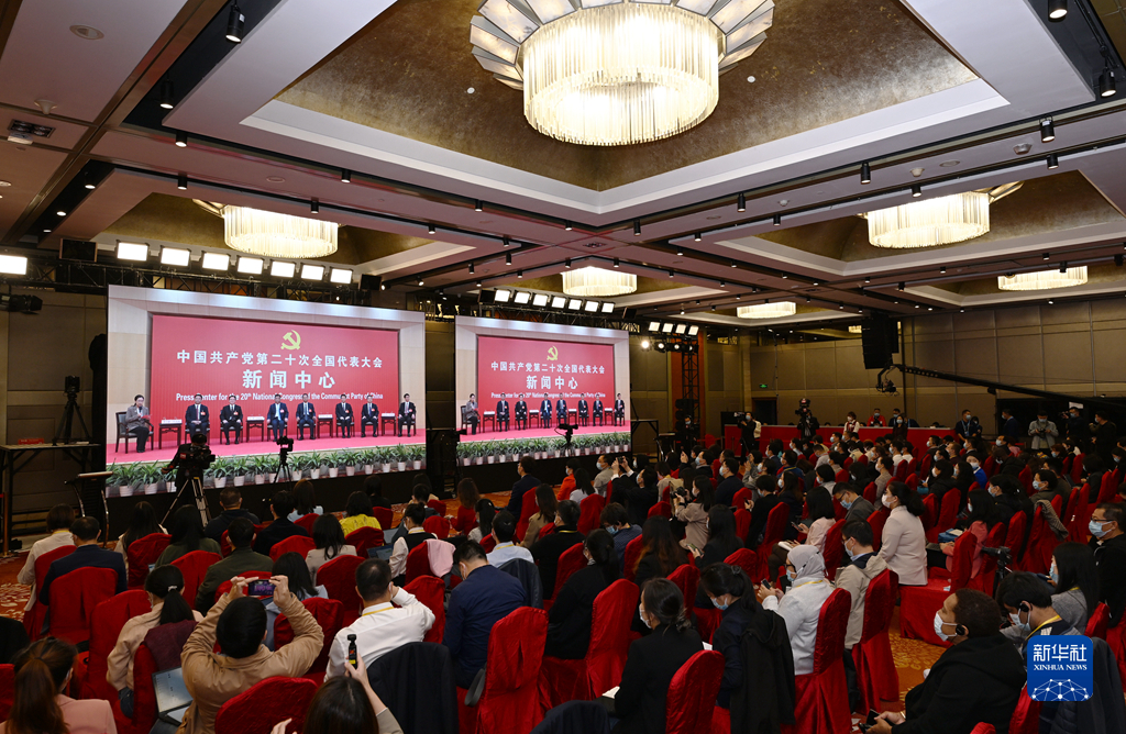 10月19日,中国共产党第二十次全国代表大会新闻中心举行集体采访。山东、河南、湖北、湖南、广东、广西、海南代表团新闻发言人出席,介绍代表团学习讨论二十大报告情况,并回答记者提问。