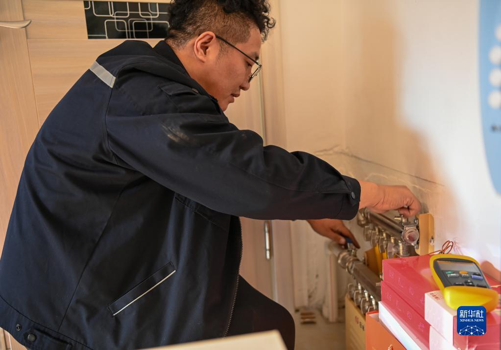 10月20日,吉林省春城热力股份有限公司永昌事业部吉大中心站工作人员在居民家内调试供暖设备。