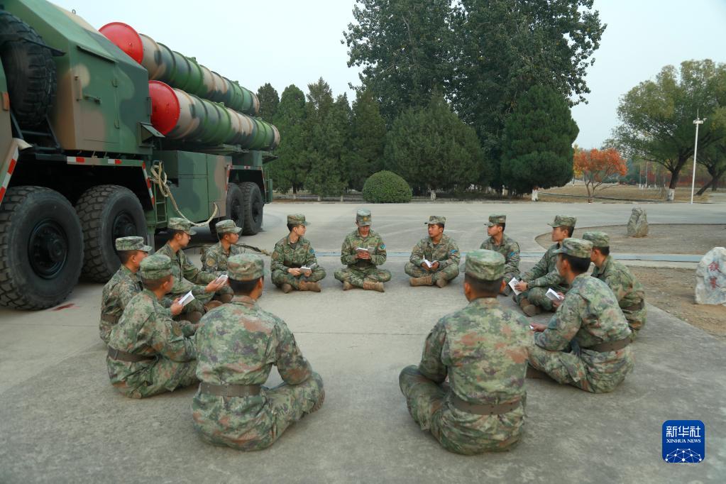 中共中央总书记、国家主席、中央军委主席习近平24日下午出席军队领导干部会议时发表的重要讲话,在解放军和武警部队引起强烈反响。这是中部战区空军“模范地空导弹营”开展“鸣镝讲堂”交流活动,积极组织官兵学习习主席重要讲话(10月25日摄)。新华社发(赵胜之 摄)