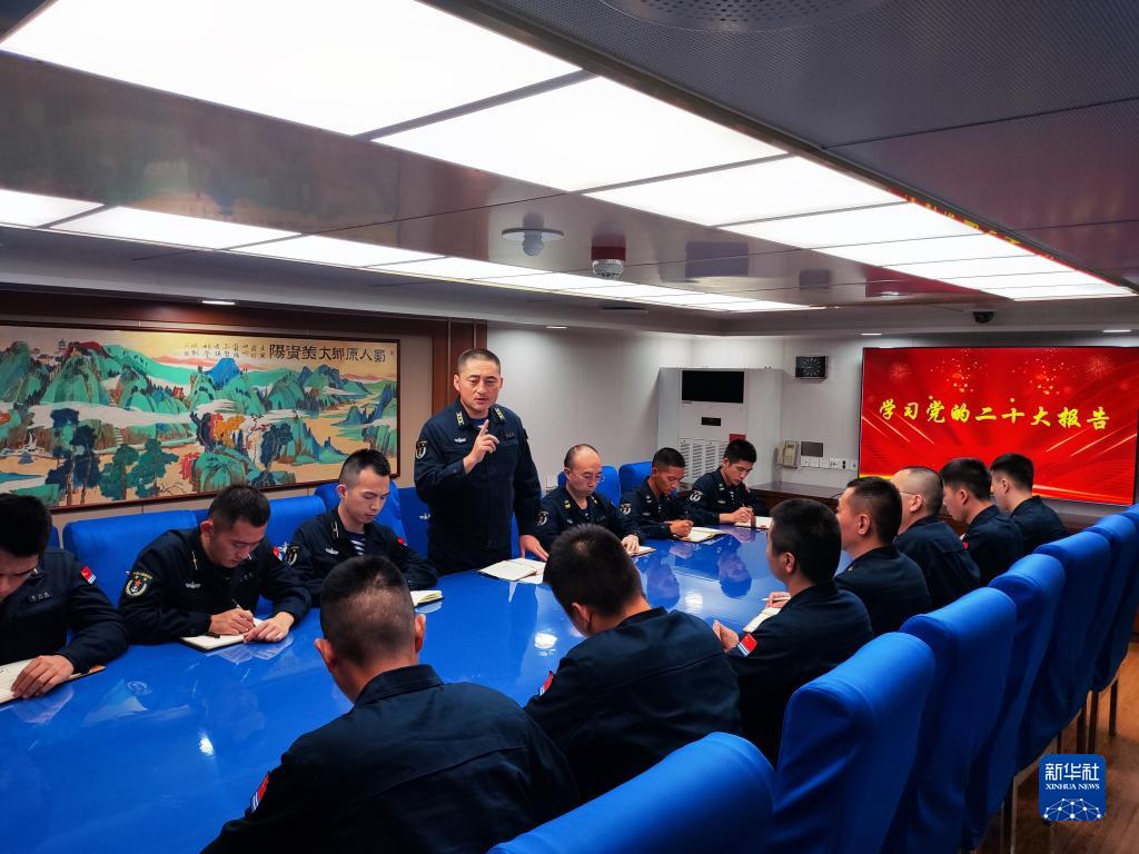 中共中央总书记、国家主席、中央军委主席习近平24日下午出席军队领导干部会议时发表的重要讲话,在解放军和武警部队引起强烈反响。这是东部战区海军护卫舰支队迅速组织官兵学习习主席重要讲话(10月25日摄)。新华社发(刘祎玮 摄)