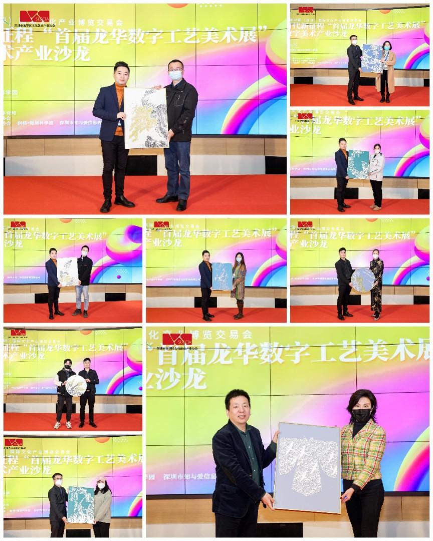 深圳市龙华区文化创意产业协会秘书长汪昌志、南方科技大学全球城市文明典范研究院秘书长陈能军博士、华夏民族文化艺术数字藏品平台主任郑捷、中艺数字服务(深圳)有限公司艺术总监周凯丽、国匠数字文化科技研究公司带头人曲振、中艺(山东)文化科技有限公司监事穆鹏飞、锦绣科学园运营总监吴刚、副总监袁青等出席开幕启动仪式。