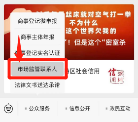 系统未设置过市场监管联系人信息或需修改市场监管联系人信息的商事主体,可通过“深圳市场监管”微信公众号设置或修改市场监管联系人信息。